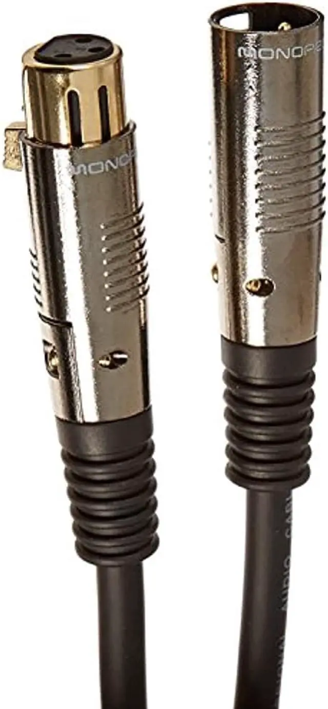 Monoprice Premier Series XLR Male to XLR Female - 35ft - Black - Gold Plated 16AWG Copper Wire Conductors [Microphone & Interconnect] About this itemMonoprice's line of Professional Audio cables ings you high performance cables at rock bottom prices ^^ Balanced audio cables utilize impedance balanced lines that reduce EM and RF noise and extend the effective range of the cable run ^^ They have a separate aided shield to provide additional resistance to interference without modulating the interference into the signal ^^