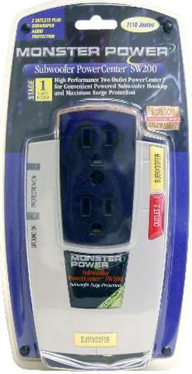 | Features | Monster Clean Power stage 1 v2.0 AC noise filtering for improved subwoofer performance. Maximum 1100 joule surge protection for both signal lines and AC power outlets. Audible and visual indicators for damage, protection, and ground status monitoring. Compact, cordless construction plugs directly into wall outlet. |