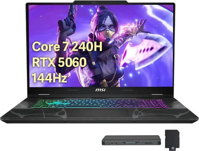 MSI Cyborg 15.6" 144Hz FHD Gaming Laptop, Intel Core 7-240H, 16GB RAM,1.5TB Storage (512GB SSD+1TB Docking Station), NVIDIA GeForce RTX 5060, Backlit Keyboard, Numeric Pad, Win 11 Pro, Black