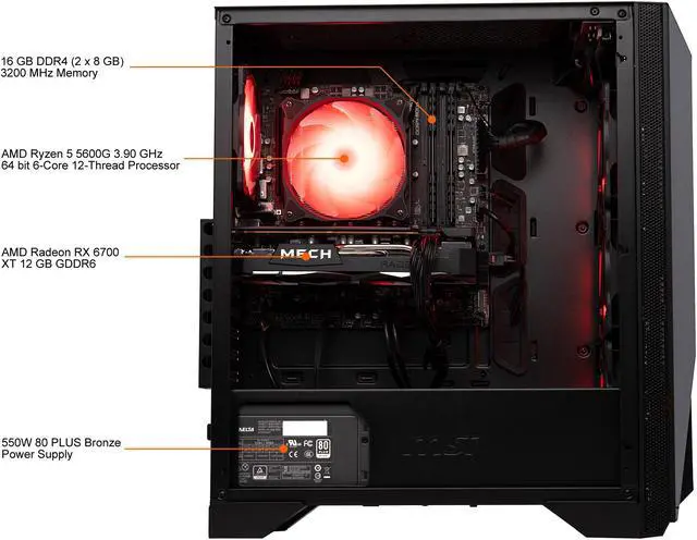 MSI Gaming Desktop Aegis ZS 5DS-290US AMD Ryzen 5 5600G 16GB DDR4 500GB PCIe SSD AMD Radeon RX 6700 XT Windows 11 Home 64-bit