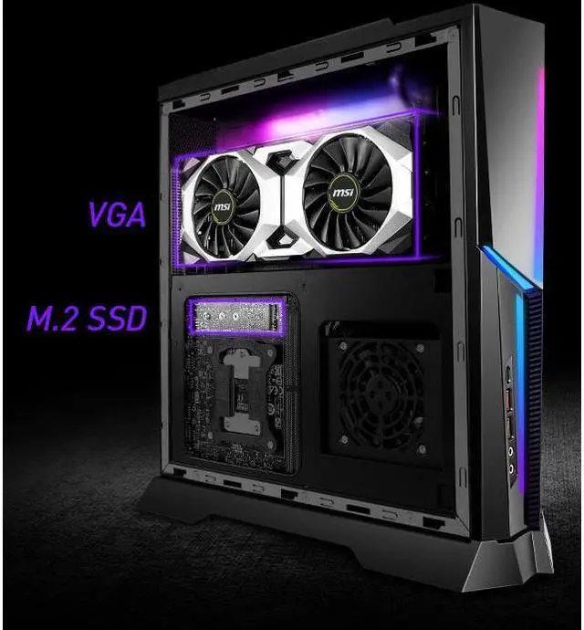 A true game changer, Trident X is redefined from inside out. The Intel 9th gen Core i9/i7 KF series processor, breathtaking MSI RTX 20-series card, and SFX power supply are packed into three separate chambers inside an only 10L case with its door-like, tempered-glass side panel. You can play and upgrade how you want anywhere in your home. Mystic Light illuminates to let you see the magic happening inside.