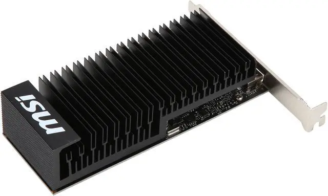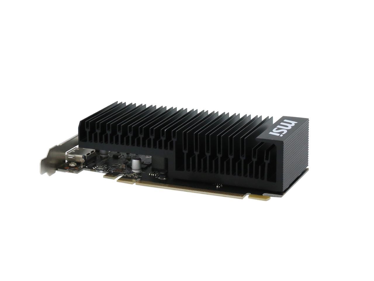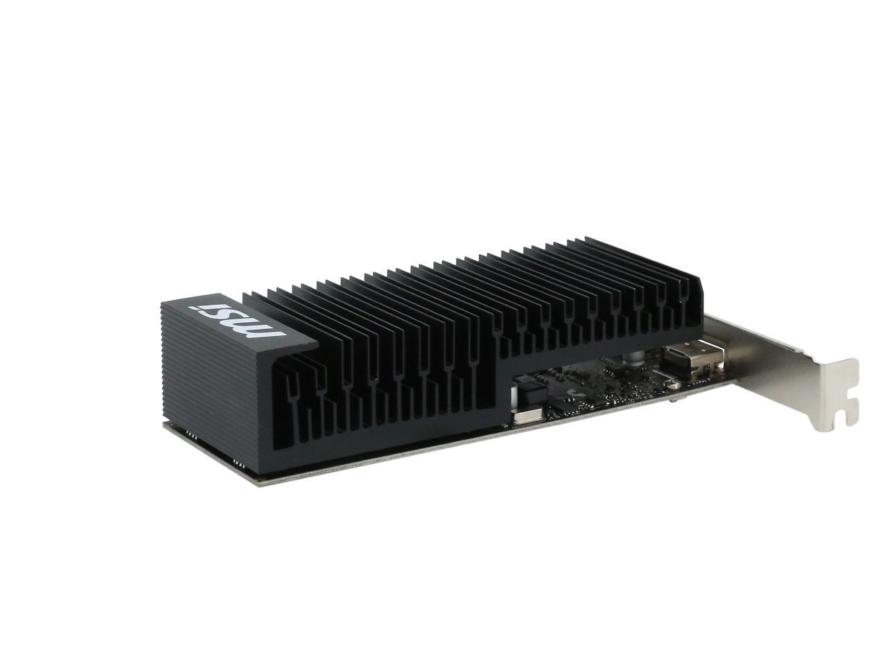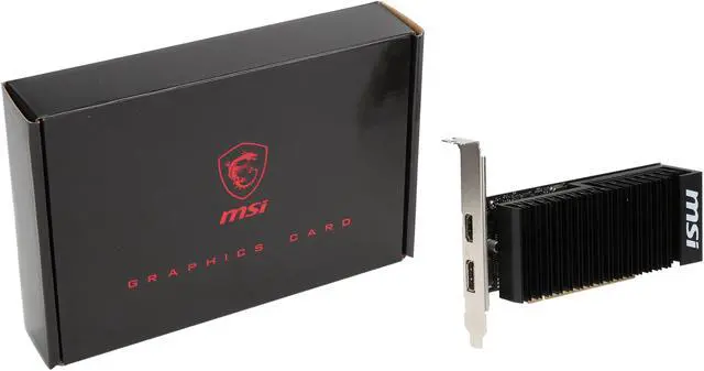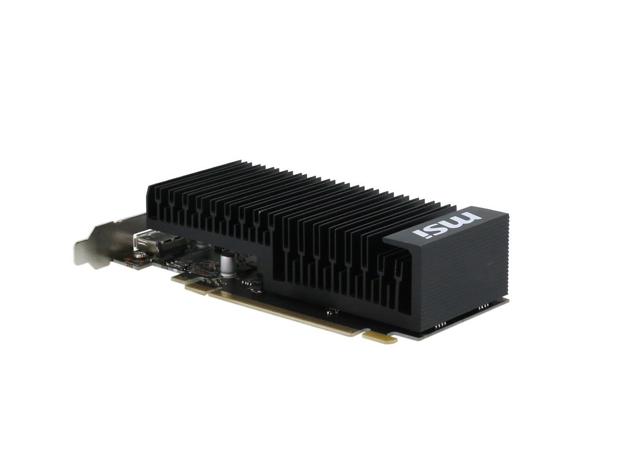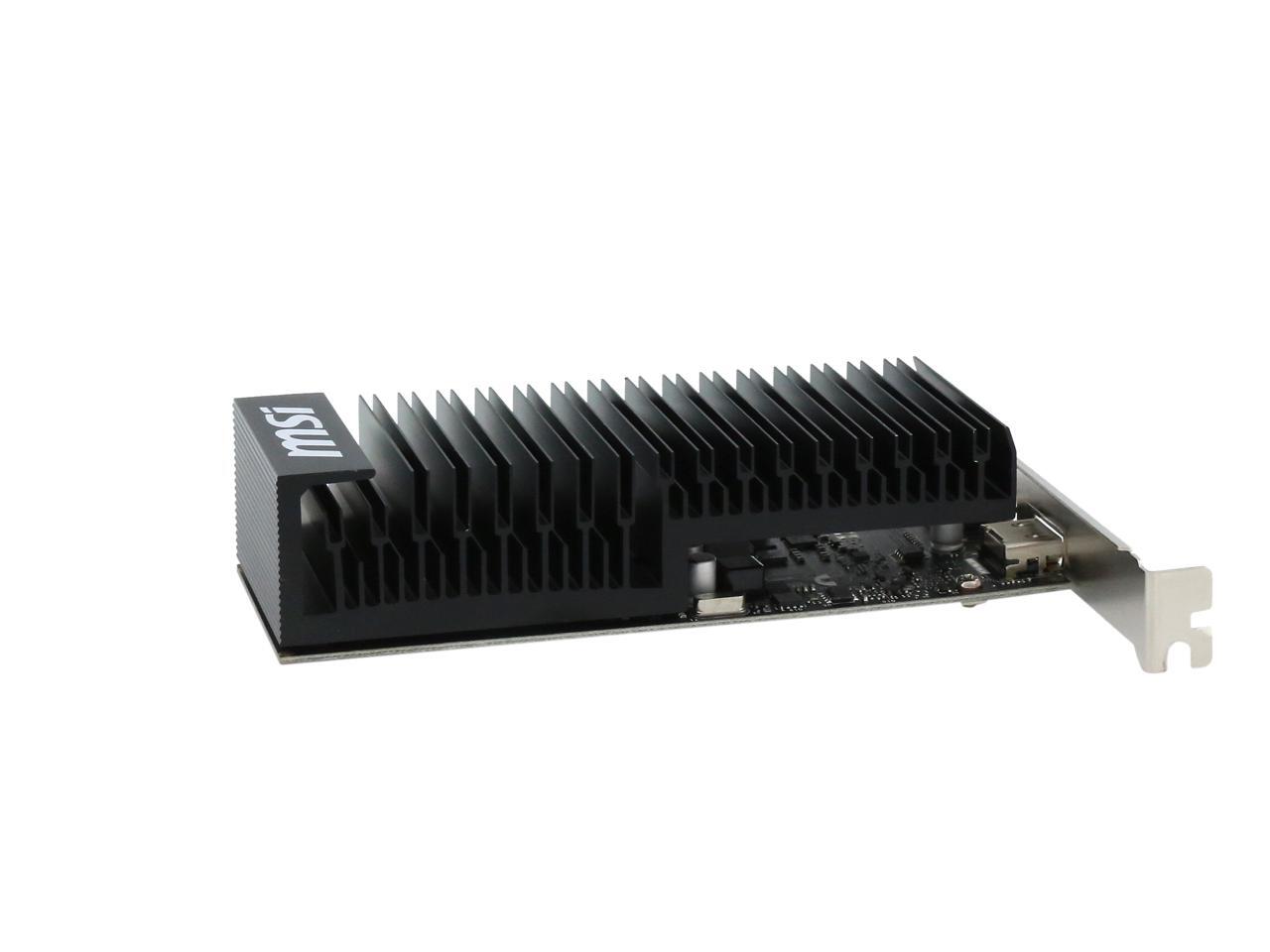 Featuring a low profile design, the MSI GeForce GT 1030 2GH LP OC is an ideal graphics card for compact systems. It’s powered by NVIDIA’s Pascal architecture and fast GDDR5 memory, delivering solid performance for everyday tasks. A large heat sink covers almost the entire PCB, producing zero noise while expelling maximum heat away. The card is built with military class 4 components to ensure outstanding lifespan and brilliant reliability. The intuitive MSI Afterburner software lets you overclock the GPU more easily.