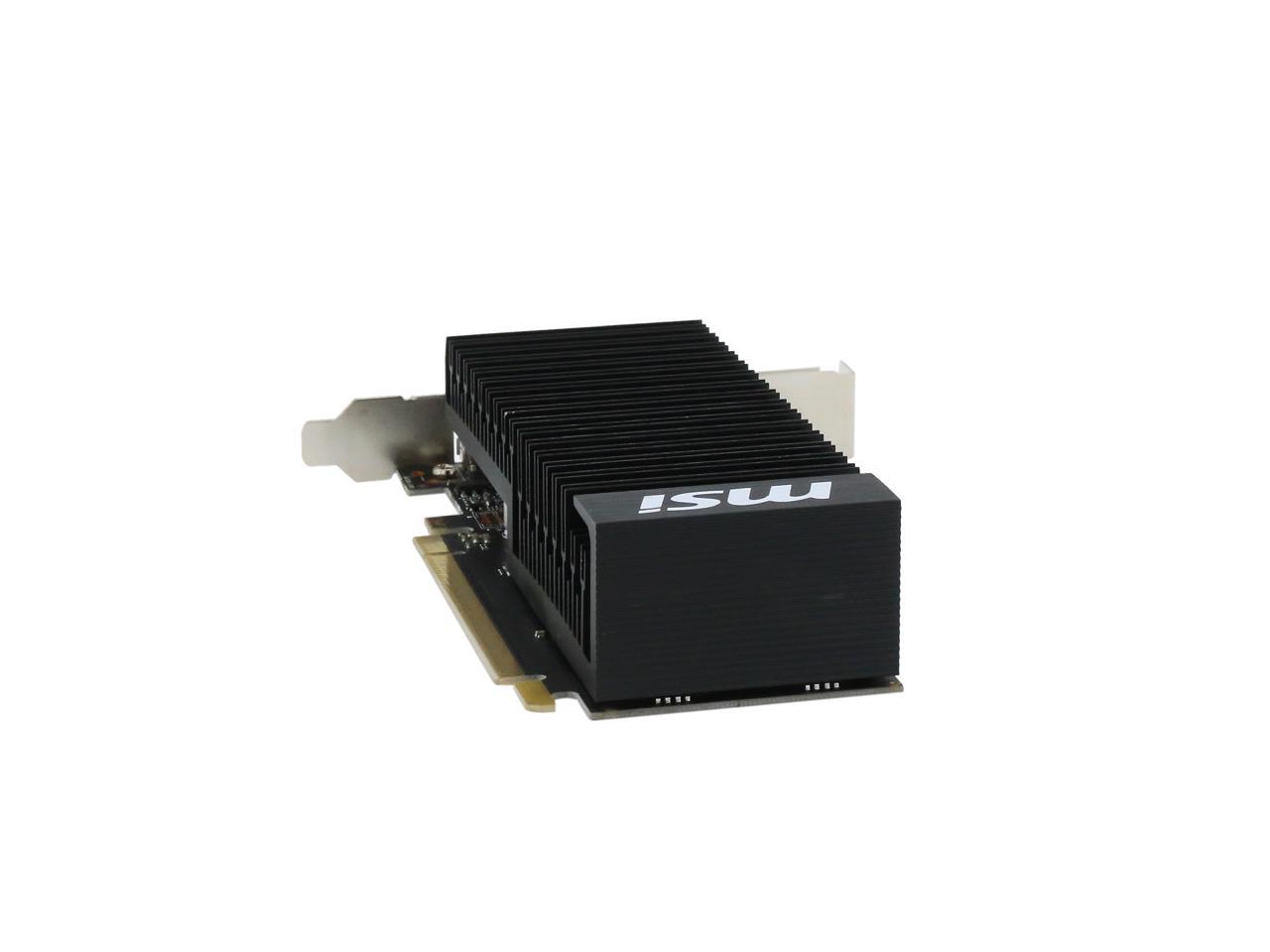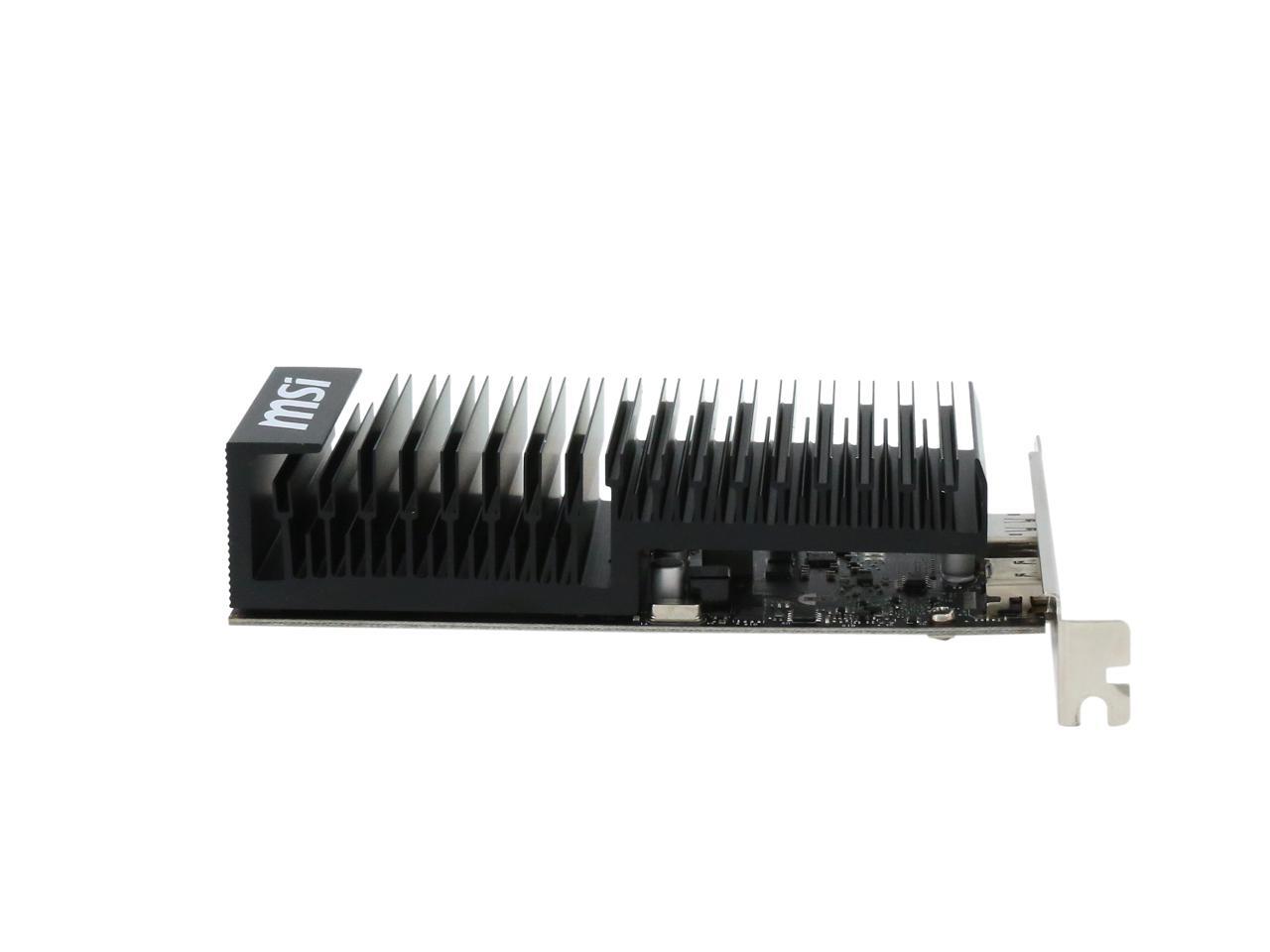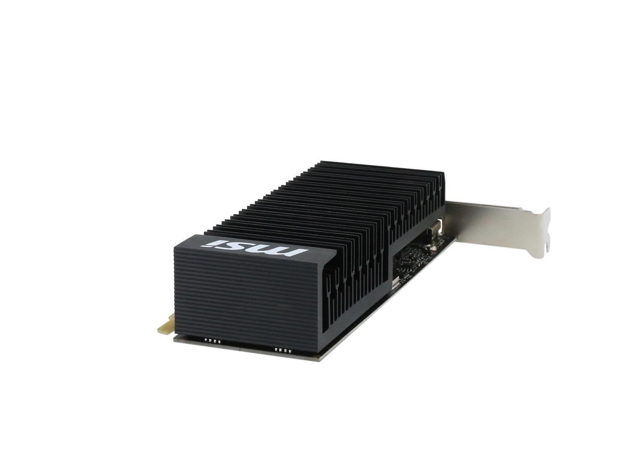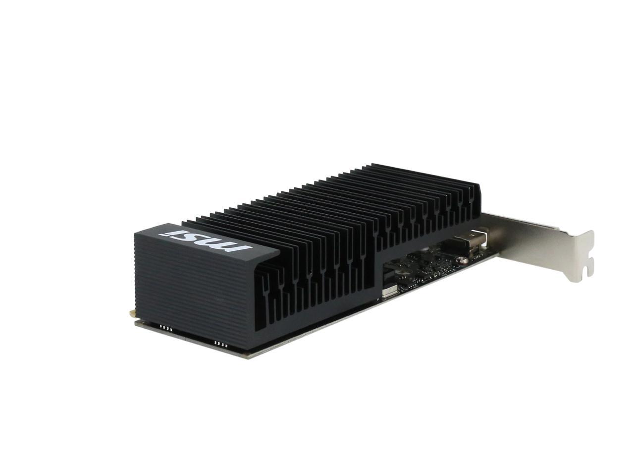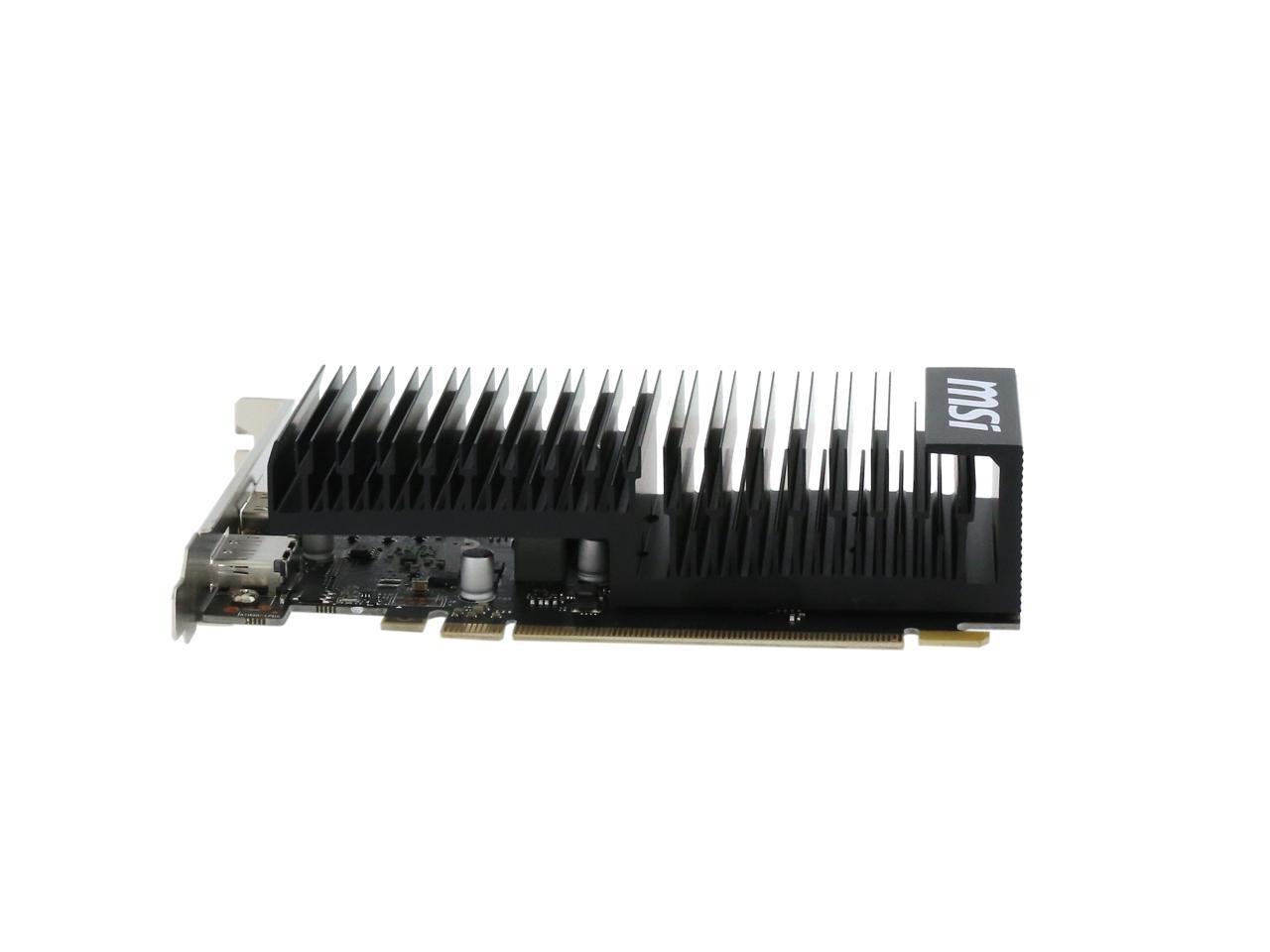 Featuring a low profile design, the MSI GeForce GT 1030 2GH LP OC is an ideal graphics card for compact systems. It’s powered by NVIDIA’s Pascal architecture and fast GDDR5 memory, delivering solid performance for everyday tasks. A large heat sink covers almost the entire PCB, producing zero noise while expelling maximum heat away. The card is built with military class 4 components to ensure outstanding lifespan and brilliant reliability. The intuitive MSI Afterburner software lets you overclock the GPU more easily.