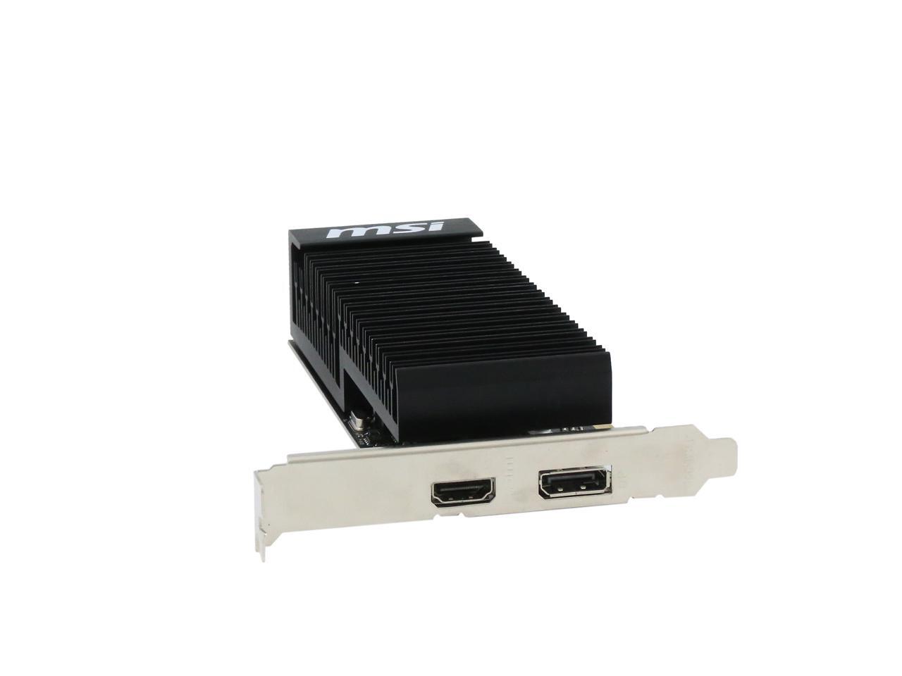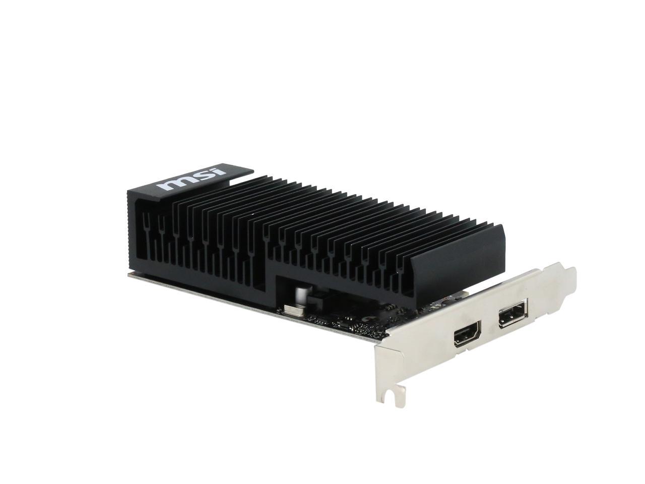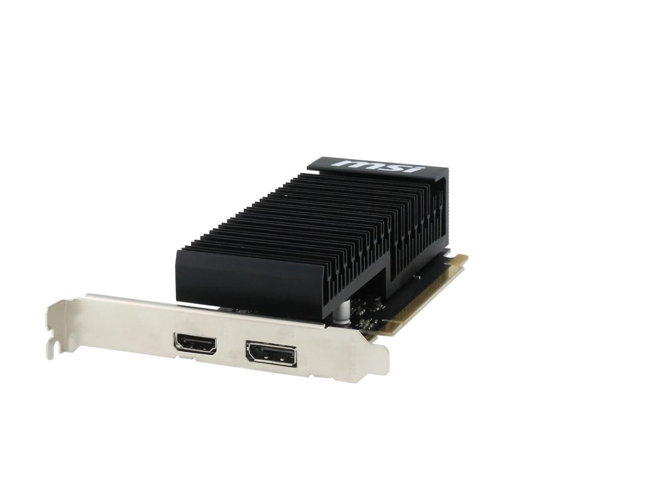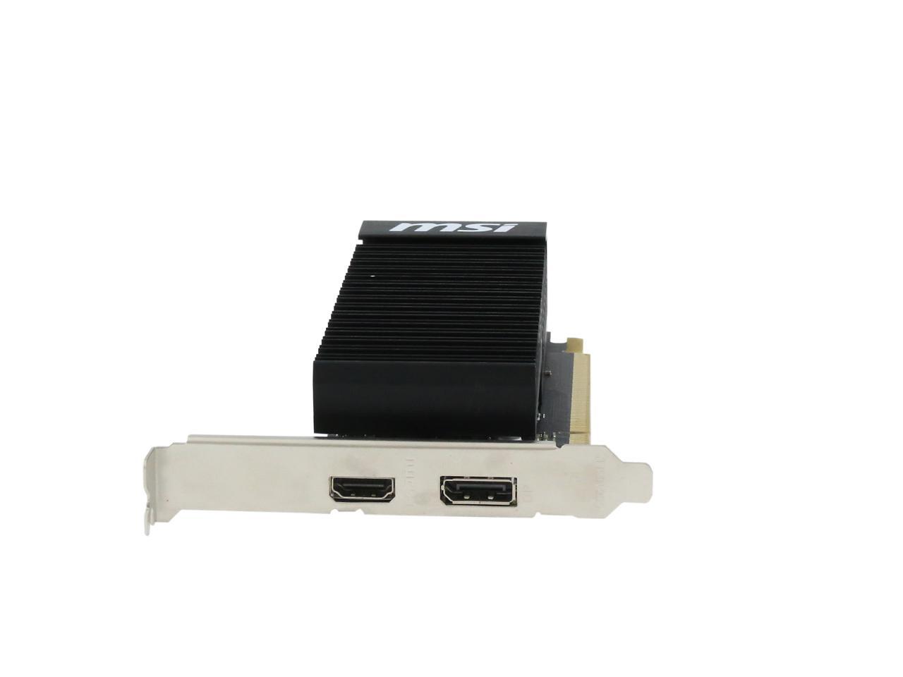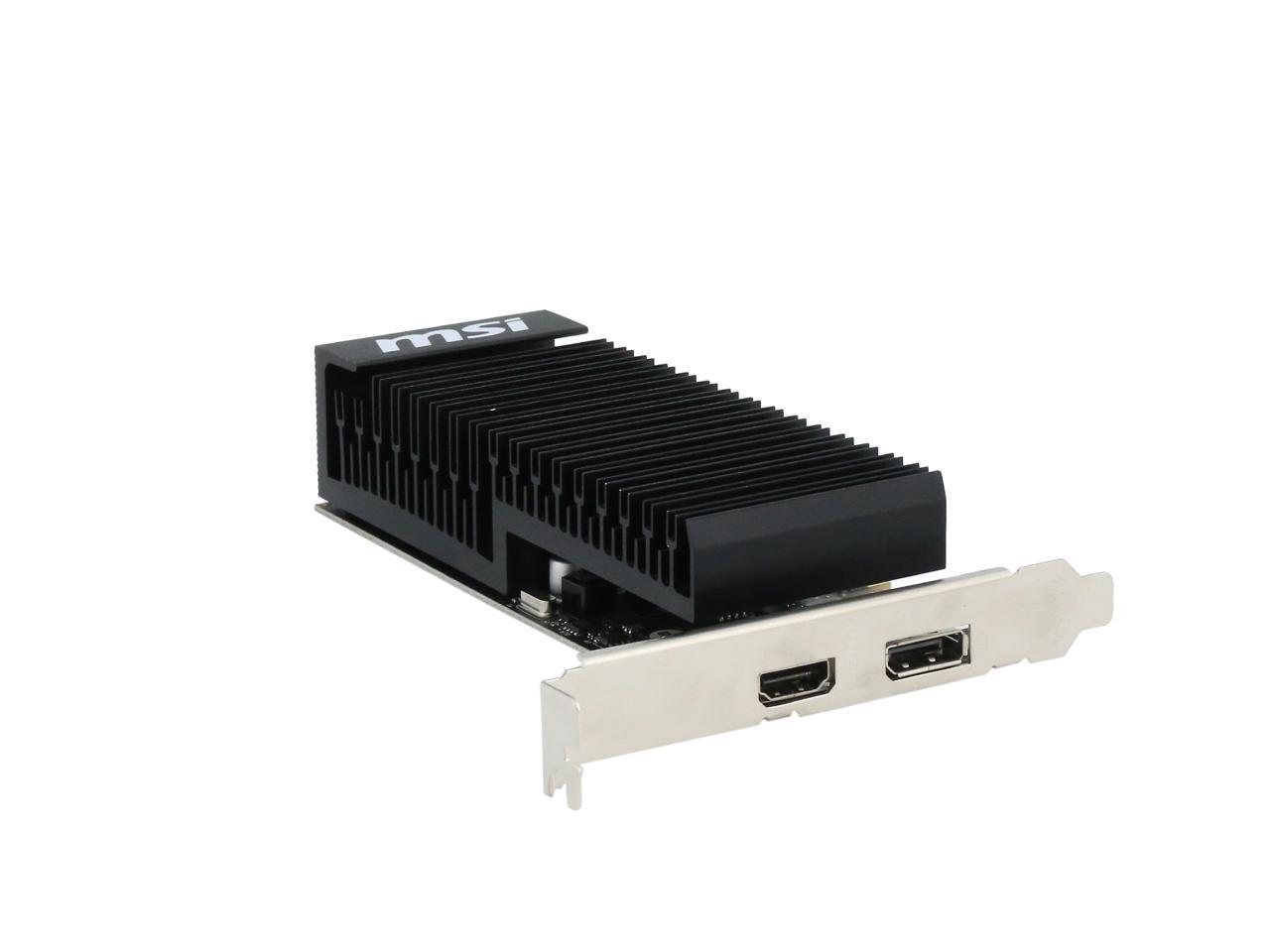 Featuring a low profile design, the MSI GeForce GT 1030 2GH LP OC is an ideal graphics card for compact systems. It’s powered by NVIDIA’s Pascal architecture and fast GDDR5 memory, delivering solid performance for everyday tasks. A large heat sink covers almost the entire PCB, producing zero noise while expelling maximum heat away. The card is built with military class 4 components to ensure outstanding lifespan and brilliant reliability. The intuitive MSI Afterburner software lets you overclock the GPU more easily.