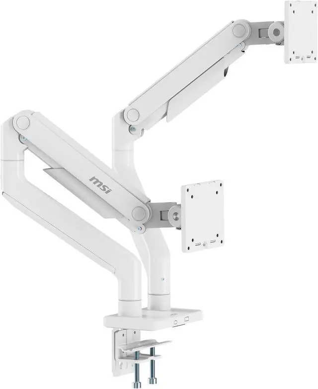 Heavy Duty Design: Experience durability and reliability with the MSI MPG MT201DW Premium Dual Monitor Stand Arms, supporting screen sizes from 17 to 45 inches and a weight capacity of 2 to 20 kg (4.4 to 44 lbs) per screen.