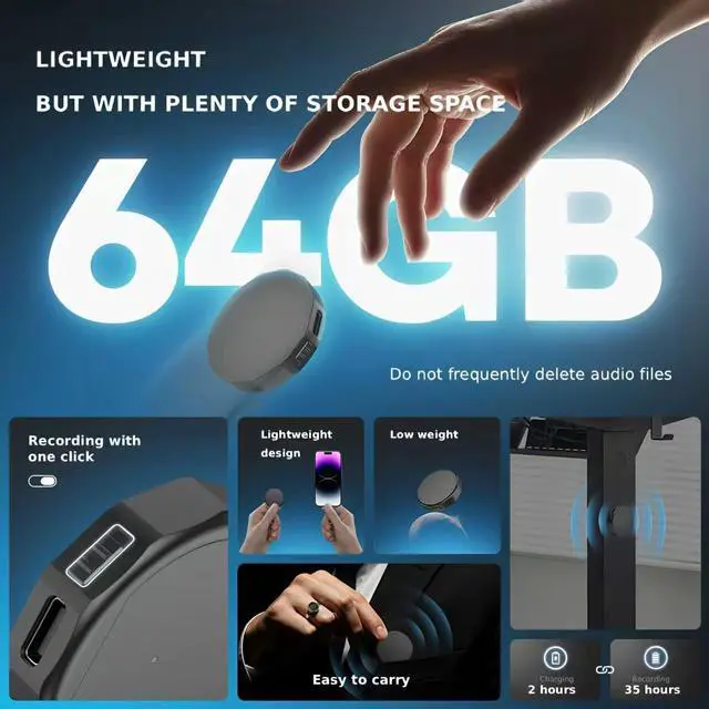 Mulukusion 64GB Recording Device - 2400H Magnetic Voice Recorder with DSP4.0 AI Noise Cancellation, HD Audio Recorder for Lectures/Interviews, MP3/WAV Voice Activated Recorder