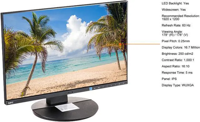 NEC EA231WU-BK 23" (Actual size 22.5") WUXGA 1920 x 1200 DisplayPort HDMI DVI-D VGA Built-in Speakers ECO Mode Backlit LED IPS Monitor