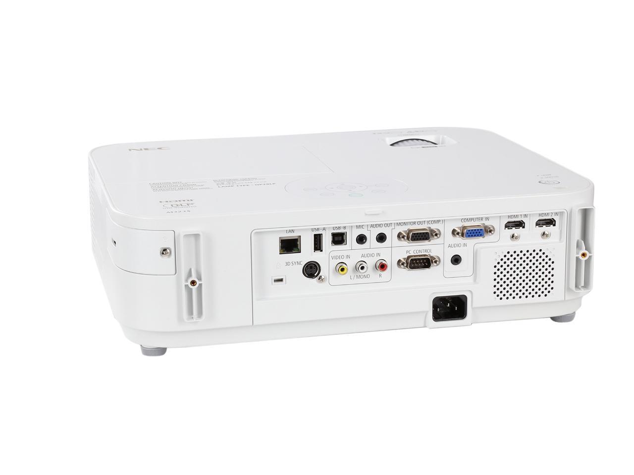 Impress your audience with larger-than-life images with the NEC NP-M323X projector. Ideal for education and small to medium businesses, this unit produces high-quality image at sizes of up to 300". Enjoy vibrant visuals with 3200 lumens, WXGA (1280 x 800) native resolution, and up to 10,000:1 contrast ratio. Powerful 20W speaker provides volume needed for large rooms. Up to 8000 hours of lamp life and ECO Mode help reduce the total cost of ownership to a minimum. The filter-free design makes maintenance a thing of the past. And with extra features like Automatic Keystone Correction, USB Viewer for JPG file playback, and Wall Color Correction, the NEC NP-M323X projector will shine in any situation.