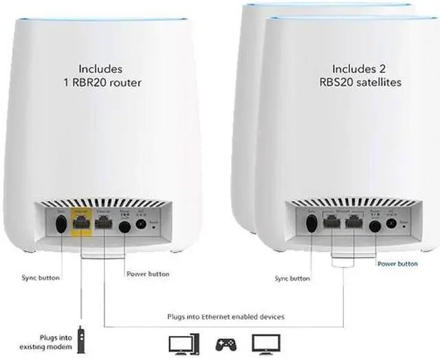 Each Orbi device comes with two Gigabit Ethernet ports. This is ideal to hard-wire entertainment centers, game systems, and home offices for fast Internet speeds.
