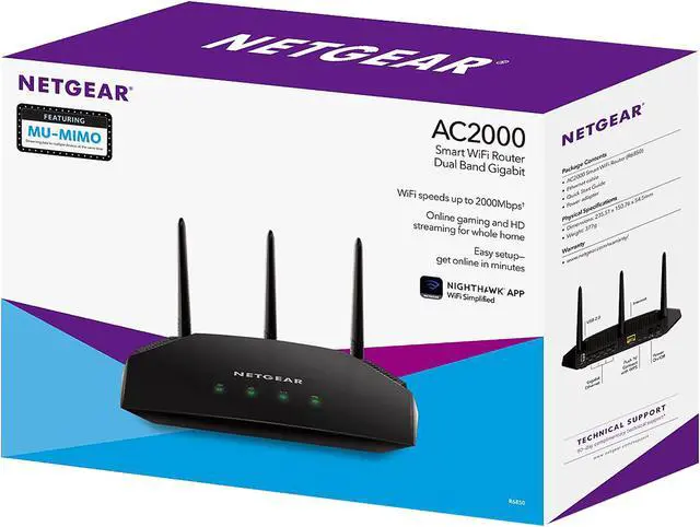 AC2000 Smart Wi-Fi Router (R6850) Ethernet cable Quick start guide Power adapter, localized to country of sale