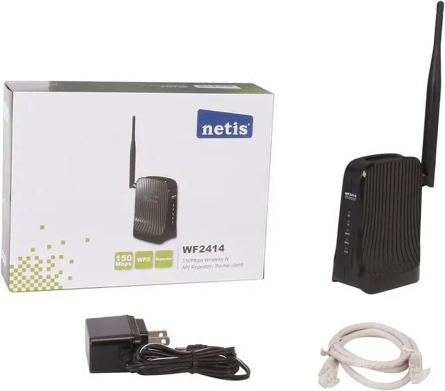 | Features | Wireless Mode: AP, WDS, AP+WDS, Repeater, Client, Multiple AP WAN Type: DHCP(Dynamic IP), PPPoE, Static IP, WISP Port Forwarding: Virtual Servers, Port Triggering, UPnP, DMZ, FTP Private Port QoS: WMM, Bandwidth Control Access Control: IP/MAC/Domain filtering VPN Pass-through: PPTP, L2TP, IPSEC Others: DDNS, Static Routing, WOL, Remote Management,Firmware upgrade The netis WF2414 150Mbps Wireless N Router is a combined wired and wireless device for SOHO network applications. It's compatible with 802.11b/g/n devices and provides the wireless transfer speed up to 150Mbps, offering a better performance on web surfing, emailing, and file sharing. Bundled with the external 5dBi antenna, it builds up a broad wireless coverage and allows you to enjoy the wireless freedom anywhere around your home. Moreover, it supports multi-wireless modes including AP, WDS, AP+WDS, Repeater, Client, to expand your wireless network easily. |