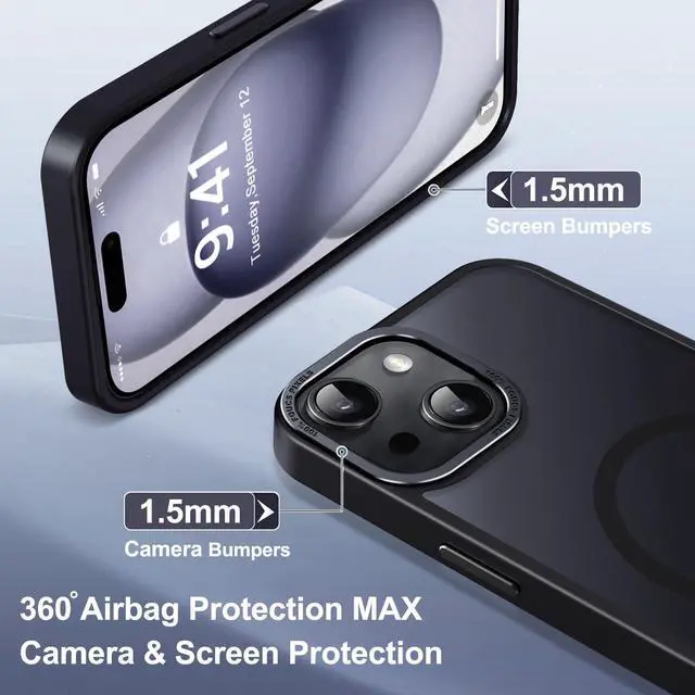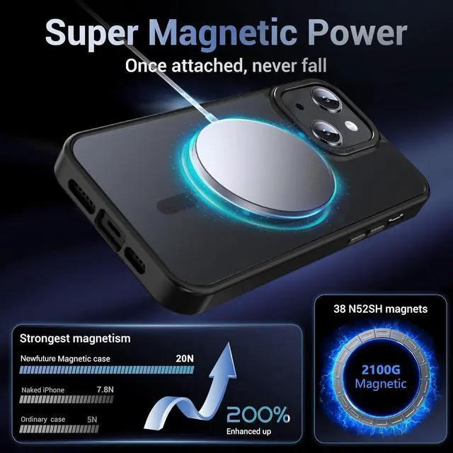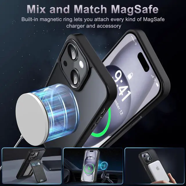 ![Alt view image 6 of 7 - Magnetic for iPhone 15 Case [Compatible with Magsafe] [Military Grade Drop Protection] Translucent Matte Anti-Fingerprint Shockproof Phone Case for iPhone 15 6.1 inch, Black](https://c1.neweggimages.com/productimage/nb640/C5JMD26032202R816CF.jpg)