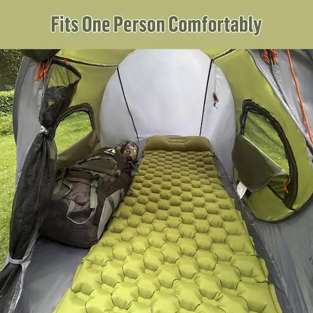 Features Pop up/Single Layer/Package 40% Smaller Pop up/Package 40% Smaller/Weather-Proof Tunnel Design Pop up/Package 40% Smaller/Weather-Proof Tunnel Design Pop up/Single Layer/Package 40% Smaller Double Built-in Pillows/Foot Pump Inflatable Portable Lightweigh/Switch to a Quilt or Blanket