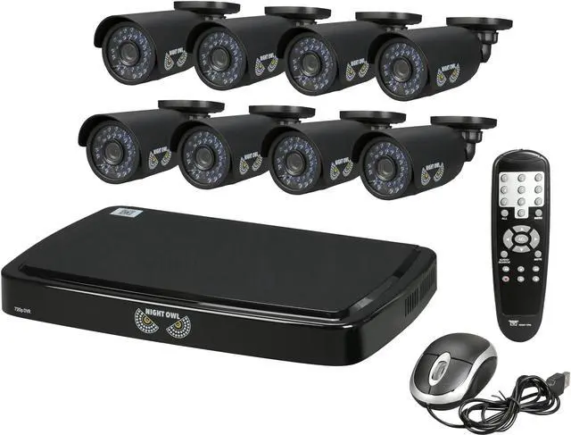 8 Channel 720p AHD DVR with pre-installed 1TB hard drive 8 x Indoor/Outdoor Hi-Definition 720p bullet cameras Wide Viewing Angle Cameras with night vision up to 100 ft. No re-wiring required, use your existing analog cables Backwards Compatible- Compatible with both Night Owl HD analog and industry standard analog BNC cameras View & Playback footage directly from your Smart Device Easy setup in less than 2 minutes! No monthly fees US Based 24/7 - 365 days a year Technical Phone & Web Support Night Owl will pay freight both ways on any defective product for warranty replacement (EZ Return)