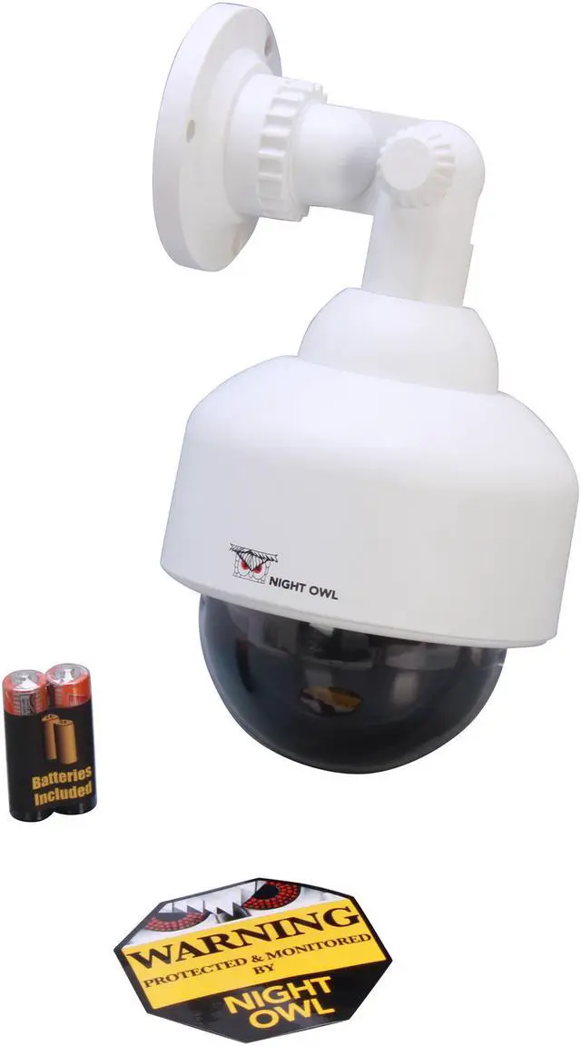 Night Owl's DUM-PTZ-W is a white decoy PTZ camera that has a flashing red LED light that gives the decoy camera a realistic look. The stand moves vertically 90? to provide you with several mounting options on any ceiling or wall. This decoy camera can be added to your home/business to increase the level of security presence. Night Owl also includes a warning sticker as an added security measure. In addition, all Night Owl products come with a 1-year worry free warranty and 24/7 technical phone support (1-866-390-1303) that is open 365 days a year.