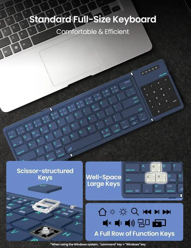 • Comfortable Typing Feel & Rich Functionality - Well-spaced standard US keyboard layout with large keys offers a familiar and comfortable typing experience as soon as the keyboard is unfolded. Responsive scissor-structured keys enhance efficiency for tasks like editing, programming, and image editing. A full row of function keys helps you efficiently control your devices.