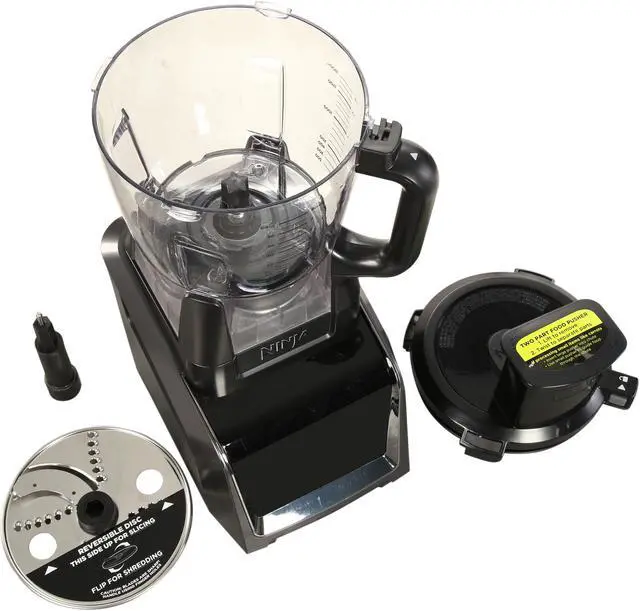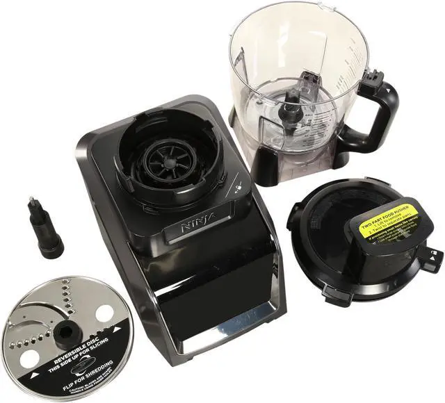 Make quick work of food blending and prep with this Ninja blend & prep system. It has 1200w of motor power, comes with multiple blades for different types of food, and features various pre-set programs to take guesswork out of drink and meal making—you can slice and shred, make smoothies and dressings, create unforgettable frozen goodies, or make dough, with a simple press. Ninja Smart Vessel Recognition automatically recognizes the attachment locked on its base and displays appropriate programs on its touchscreen. It also has Pulse mode for controlled processing to get your desired texture.