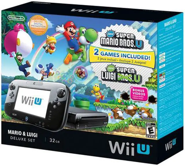 The next generation HD game system, Wii UTM, is your ticket to the future of Nintendo franchises. Get the fun started for the whole family right out of the box with two great games: New Super Mario Bros.TM U and New Super Luigi UTM! Connect online with friends around the world and transform the way you play and watch TV with the Wii U GamePad controller (Broadband Internet access required for online features. For more info, go to support.nintendo.com.). The Wii U game console plays brand new games from beloved Nintendo franchises in up to full 1080p HD as well as old WiiTM favorites. Jump through hundreds of side'scrolling MarioTM levels in New Super Mario Bros. U and New Super Luigi U. Discover new ways to play with the GamePad, interact with people around the world via MiiverseTM, and have real'time video chats. Download full games, classic games, add?on content, and applications from the Nintendo eShop. Browse the Internet or control your TV with the GamePad while accessing cable and video?on?demand. (Broadband Internet access required for online features. For more info, go to support.nintendo.com.).