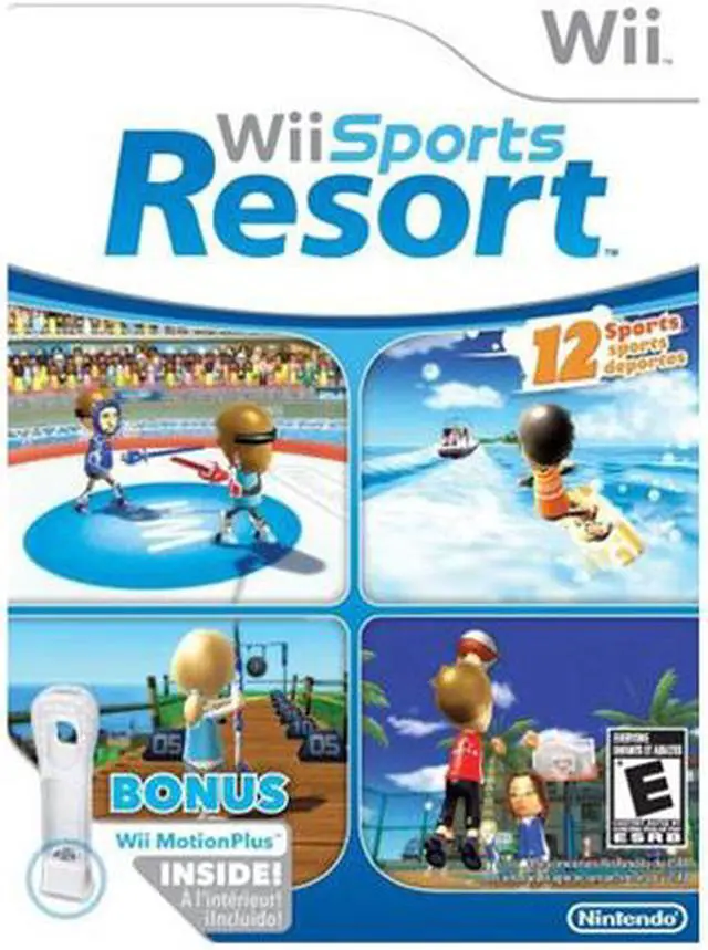 | Features | Wii Sports Resort is a new collection of fun sports games that anyone can pick up and play. This sequel to the popular Wii Sports makes use of the Wii MotionPlus accessory, which gives players the most responsive and realistic experience possible. The Wii MotionPlus accessory, which is included with Wii Sports Resort, plugs into the base of the Wii Remote controller and, combined with the accelerometer and sensor bar, provides an experience that gives players an even greater sense of immersion. Just as with Wii Sports, people will love competing against friends and family. As the competition heats up, Wii Sports Resort is as much fun to watch as it is to play. First-time players will find it easy to pick up a Wii Remote and jump into the action. Wii Sports Resort takes place on a tropical island. A wide range of activities will keep players coming back for one more round. Some sample activities include Sword Play, Power Cruising (racing a water scooter) and Disc Dog, which involves accurately tossing a disc to a cute, Mii-like dog. |