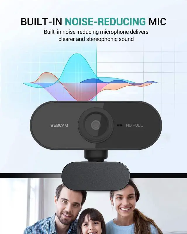 The 1080P webcam adopts 1920*1080 high-definition lens to transmit and record vivid video at a rate of 30 frames per second. Can clearly show details and provide you with a broad view of the room. Use this webcam to start enjoying video time.