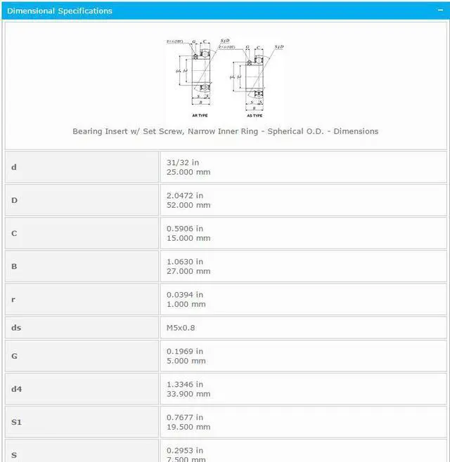 NTN AS205 Insert Bearing w/ Set Screw 25x52x15mm