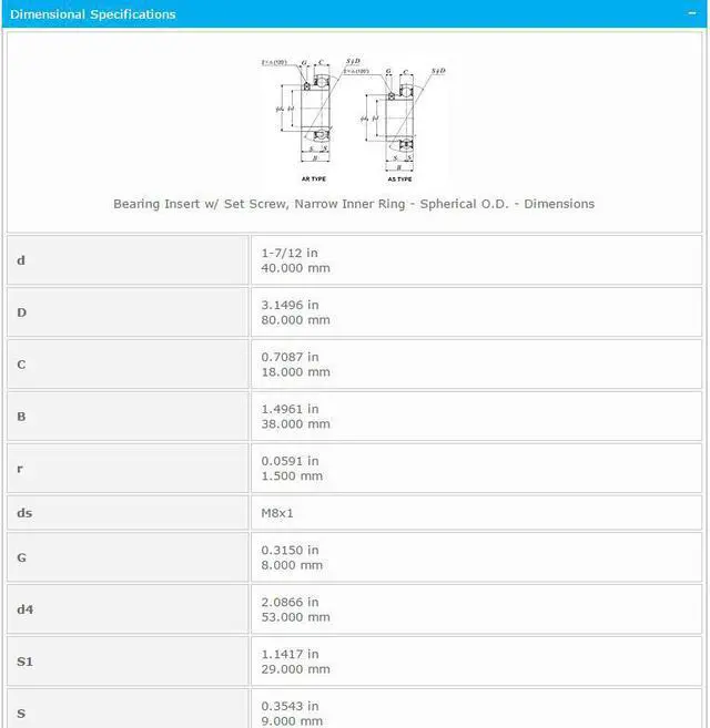 NTN AS208 Insert Bearing w/ Set Screw 40x80x18mm