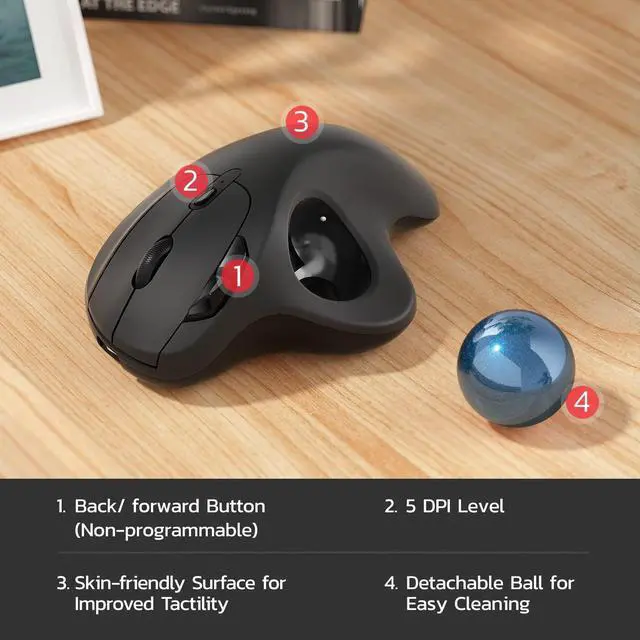 The track ball mouse has 4 DPI settings, 400 (Default)-800-1200-1600, which can be easily switched by clicking the DPI button below the scroll wheel.