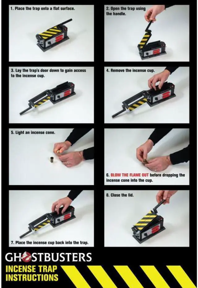 Place an incense cone in the metal heat resistant base and watch smoke come out as you trap ghost.