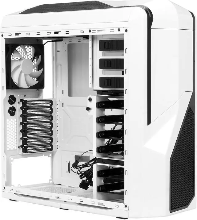 | Features | Clearance for top 240mm dual radiator for water cooling solutions Adjustable interior pivot 120mm / 140mm fan slot for directional air flow Removable HDD cage to allow more room for extended video cards Innovative right mounted HDD rails for easy hard drive replacement Single 120mm / 140mm side fan with acrylic window for interior viewing and cooling Front internal 2 x USB 3.0 headers, 2 x USB 2.0, audio and microphone input 30W 3-step fan control for setting up your system for silence or performance Wire management support up to 25mm space for wasy cable management Scrw-less 5.25" and HDD trays tat secures 2.5" SSD Cooling capability fo up to eight fans (2 x 120mm and 1 x 140mm LED fan included) |