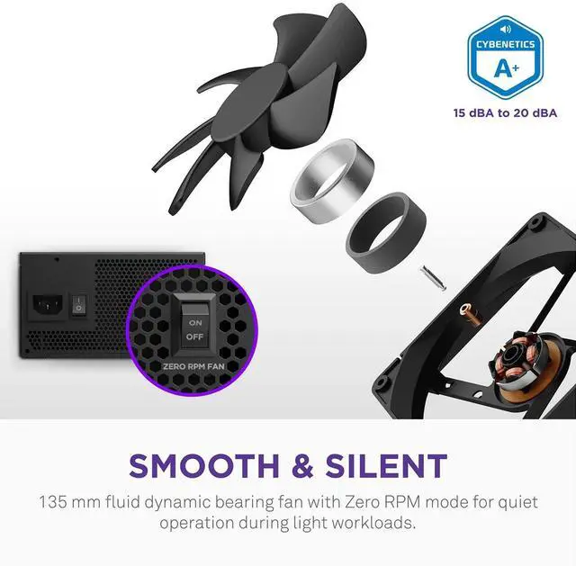 WHISPER-QUIET OPERATION Cybenetics noise certified for near-silent performance: A++ for C750 and C850 ( <15 dBA), A+