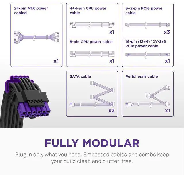 FULLY MODULAR WITH EMBOSSED CABLES Use only the cables you need with a clean, compact design and durable, flexible c
