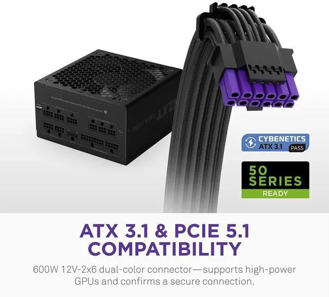 ATX 3.1 CERTIFIED, PCIE 5.1 READY Supports next-gen GPUs with a dual-color 12V-2x6 connector for safe, stable, and efficient power deliveryideal for modern NVIDIA graphics cards.