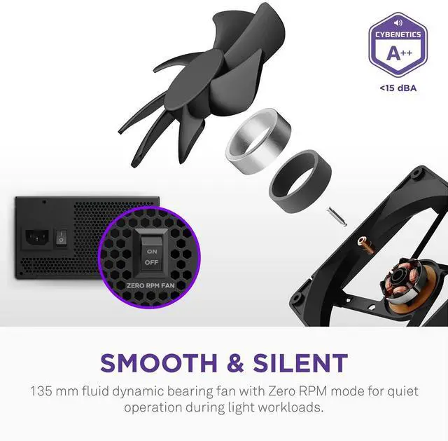 WHISPER-QUIET OPERATION Cybenetics noise certified for near-silent performance: A++ for C750 and C850 ( <15 dBA), A+ for C1000 (1520 dBA).