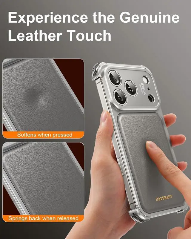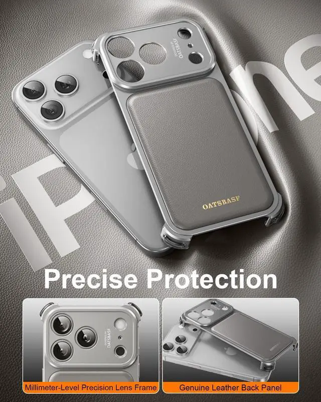 This phone case, exclusively designed for the iPhone 17 Pro Max, features a metal frame paired with a genuine leather back panelstriking a balance between structural sturdiness and a premium, luxurious feel. Crafted via 1:1 molding based on the actual phone, its cutouts and dimensions align perfectly with the device, ensuring no disruption to daily operations. It is compatible with magnetic charging, allowing for convenient power replenishment without removing the case. The full-coverage lens bezel keeps dust and scratches at bay, while the shock-absorbing cushions built into the corners soften impact from accidental drops or bumps. This case seamlessly combines style, practicality, and protection to provide reliable care for your phone.