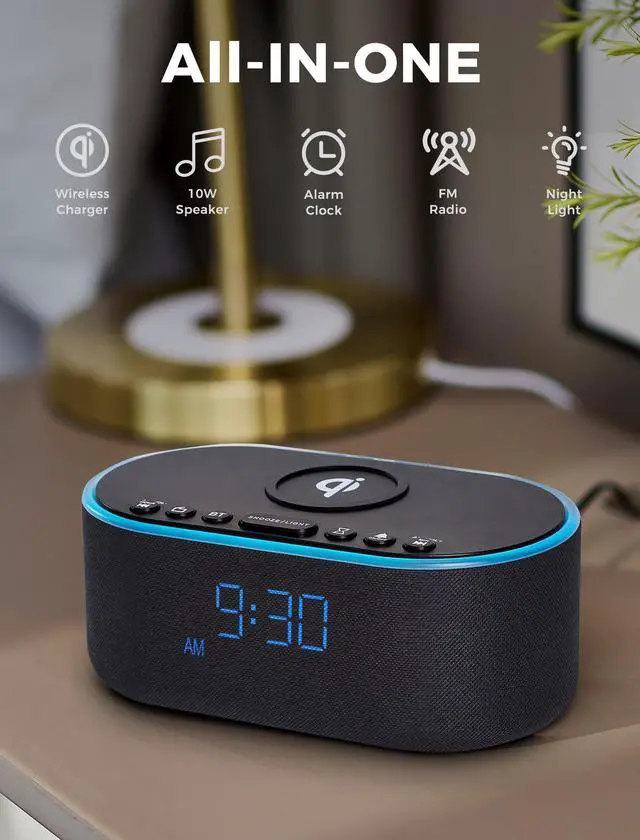 Beyond 8 built-in alarm sounds, you can set your favorite FM radio station as your wake-up sound.