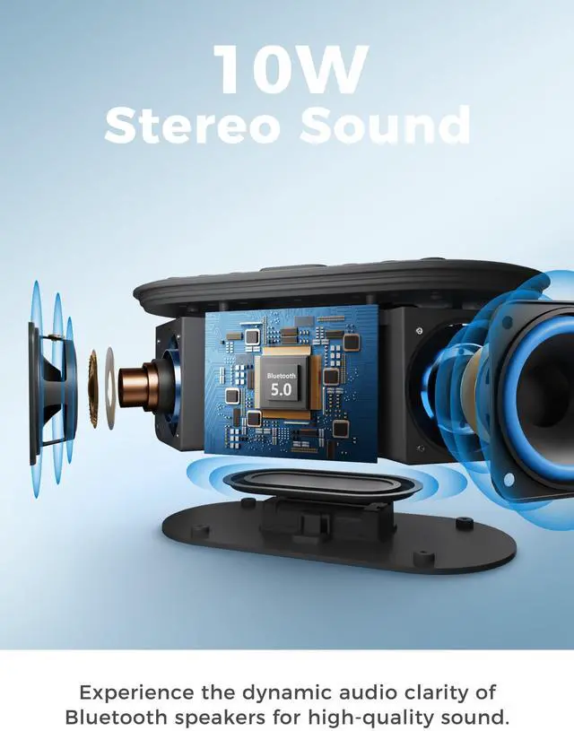 Unleash the full potential of your audio with the 10W stereo speakers.