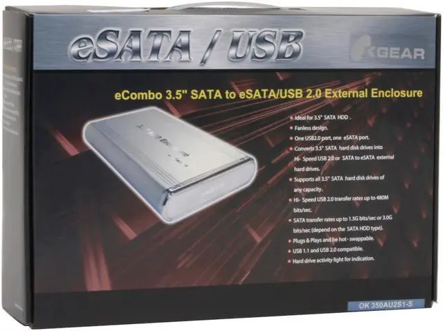 | Features | Ideal solution for any brand 3.5" SATA HDD up to any capacity. Aluminum housing for optimal heating dissipation. True plug and play. Hot- Swappable. Compatible with Window 98/ME/2000/XP Compatible with Mac OS 8.6 and newer Stackable design works vertically or horizontally Beautiful, flexible and fast! Transfer data from any HDD at speeds up to 480MbpsFOR USB 2.0 interface.For SATA transfer rates up to 3.0 G bits/sec( depend on the SATA HDD type). Backwards compatible to USB1.1. Hard drive activity light for indication. Fanless design. one USB2.0 port, one eSATA port. Converts 3.5" SATA hard drive into Hi-speed USB2.0 or SATA to eSATA external hard drives. |