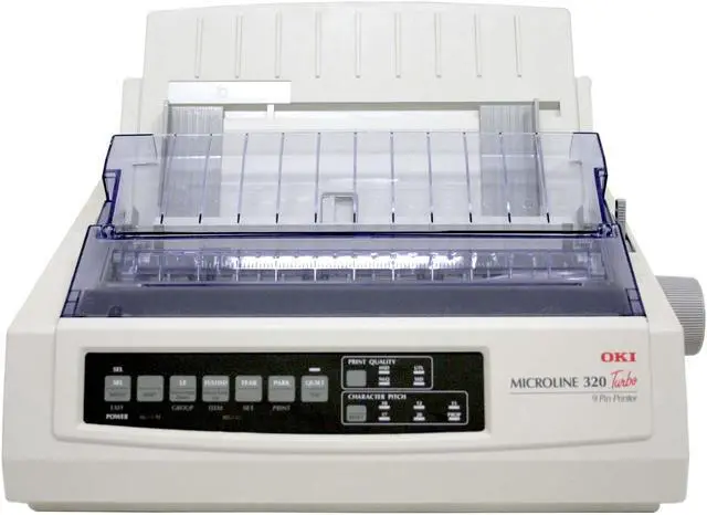 OKI Data's Microline 320 Turbo is a 9-pin dot matrix printer, engineered for reliable performance in a variety of applications. The 320 Turbo is built to last, no matter what your finance department, order desk, or shipping department demand of it! The durable printhead is designed to strike hard enough to make a clear impression, even on 6-part forms.
