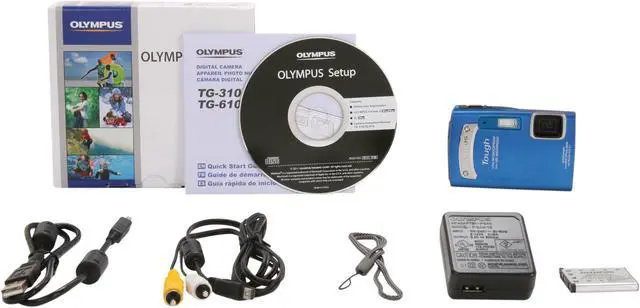 OLYMPUS TG-310 Blue 14 MP 3.6X Optical Zoom Waterproof Shockproof 28mm Wide Angle Digital Camera