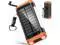 Solar-powered portable power bank dimensions: Approximately 3.4 inches × 6.9 inches × 1.8 inches, weighing about 1.6 pounds.