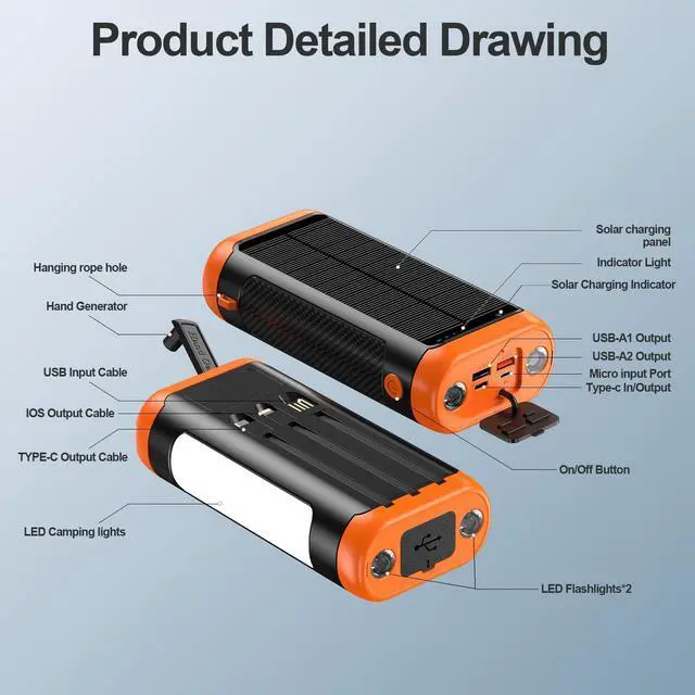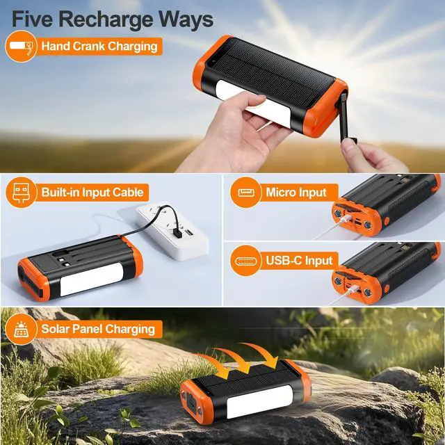 When charging via the Type-C port (using PD-compliant cables and adapters), a full charge takes approximately 6-7 hours. Solar and hand-crank charging are slower,cable charging is recommended for non-emergency situations.