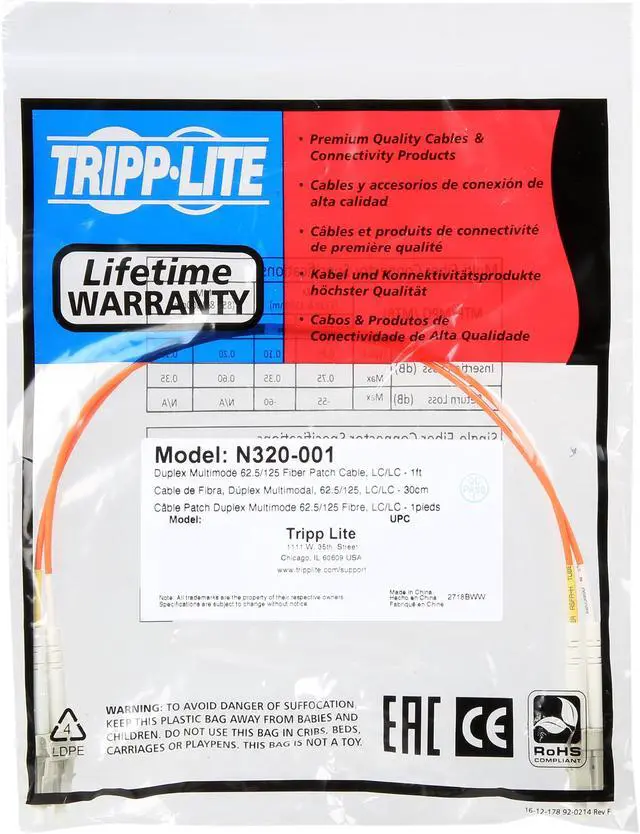 Tripp Lite N320-001 1 ft. Duplex MMF LC To LC 62.5/125 Fiber Cable