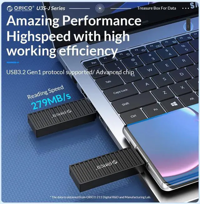 ORICO USB 3.0 Flash Drive 32GB Memory Stick 260 MB/s Reading Thumb Drive with Keychain USB Flash Drive Metal USB Drive Data Storage Compatible with Computer/Laptop USB C
