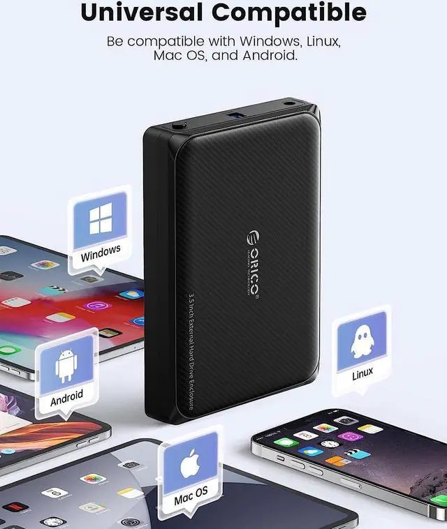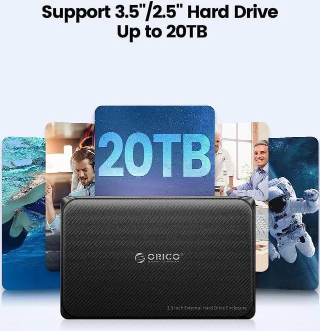 Speed USB 3.0 connection offers a data transfer rates of up To 5 Gbps, 10x faster than that of USB 2.0, ORICO 3.5 inch HDD Enclosure is compatible with USB 2.0 and USB 1.1 devices. It also supports large-scale data processing and mass data storage, supports 3.5 inch HDD SSD. No matter at home or in the office, ORICO 3588US3 can stream your movies, photos and music out to PC and Mac computers. Now you can easily enjoy your media files.