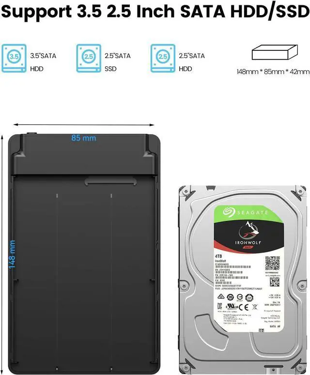 Speed USB 3.0 Controller with a 3.3 ft USB 3.0 Cable together to offer an Easy and Reliable Connection with a speed of up to 5 Gbps, 10x faster than that of USB 2.0. Also backward Compatible with USB 2.0, USB 1.1 & USB 1.0 is ok. It is Plug and Play, all you need is put you drive in and attach it to your Computer, no reboot and additional driver installation is needed. It is a super Compact gadget easy for Carrying & Travelling. Allowing users to take valuable files with them.