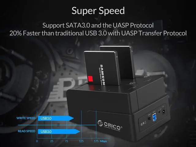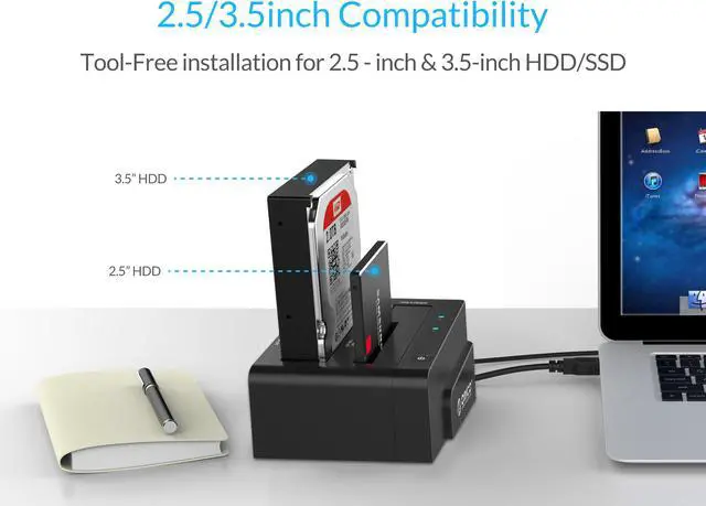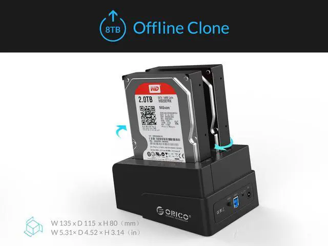 ORICO USB 3.0 Hard Drive Docking Station supports 2 x 2.5 inch or 3.5 inch SATA Hard Disk Drives or SSDs.