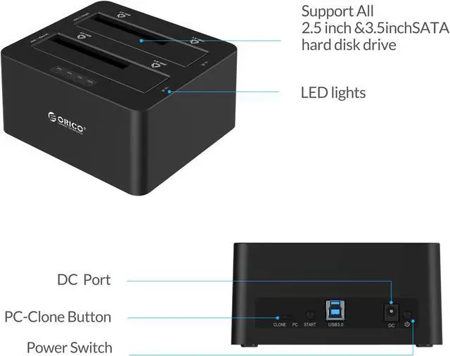 -No driver required ready for 2 x 2.5" and 3.5" SATA HDD or SSD. Allow to accessing two Drives at the same time