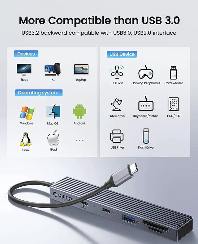 Hot-swappable, compatible with Windows, Mac OS and Linux;
