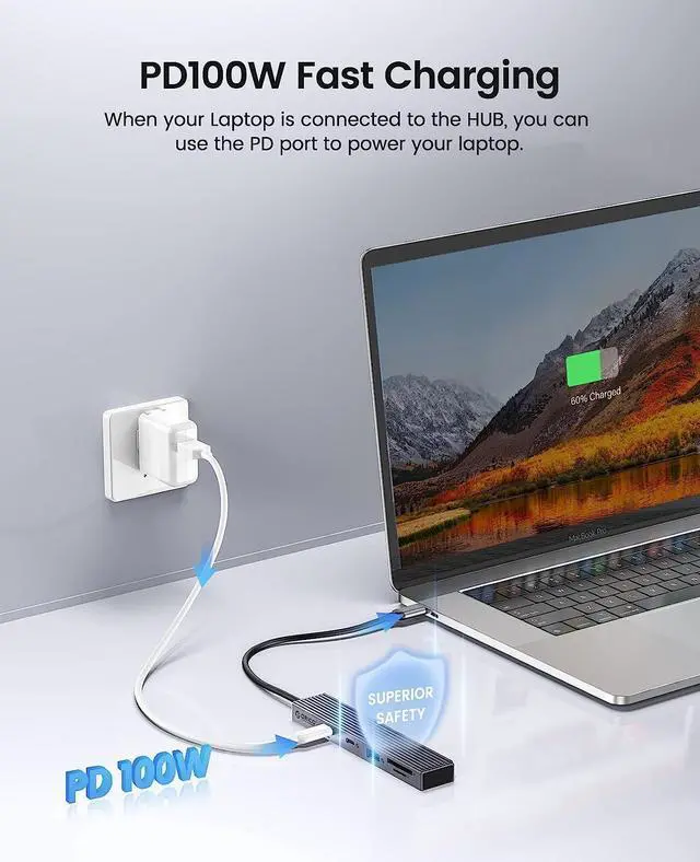 Equipped with USB 3.2 Gen2 10Gbps USB-A/USB-C interface, it supports a maximum PD 100W power supply, and is backward compatible, and supports USB 3.0 TF/SD interface (same read), four specifications can be selected arbitrarily;
