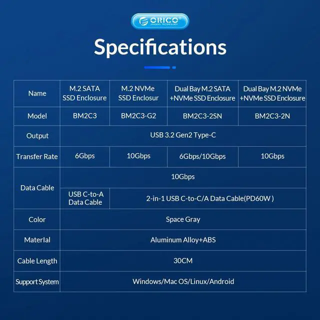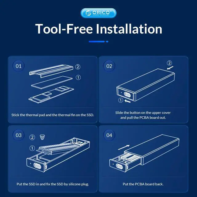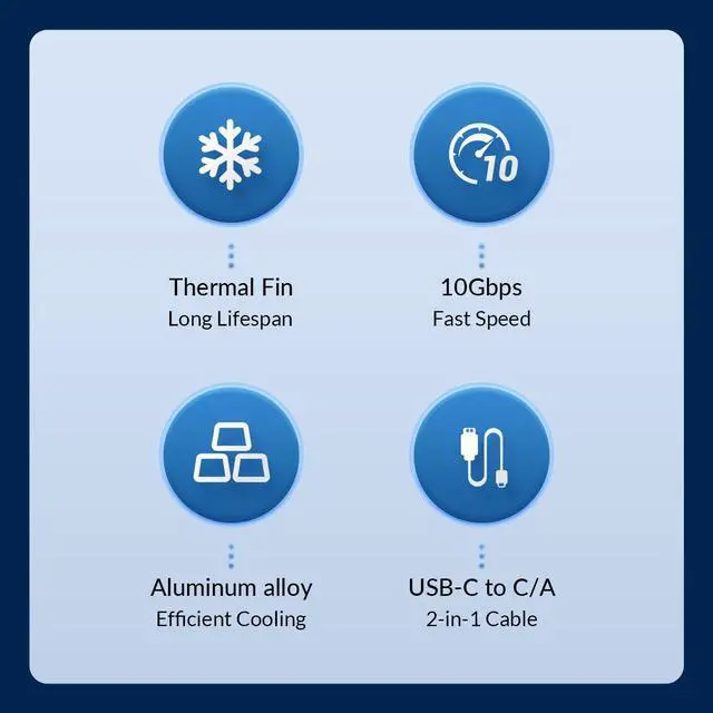Tool Free Installation Upgrade Cooling Efficiency-Cooling Vest USB 3.2 Gen2 6Gbps Speed Universal Compatible SSD Enclosure High-quality Main Control Chip